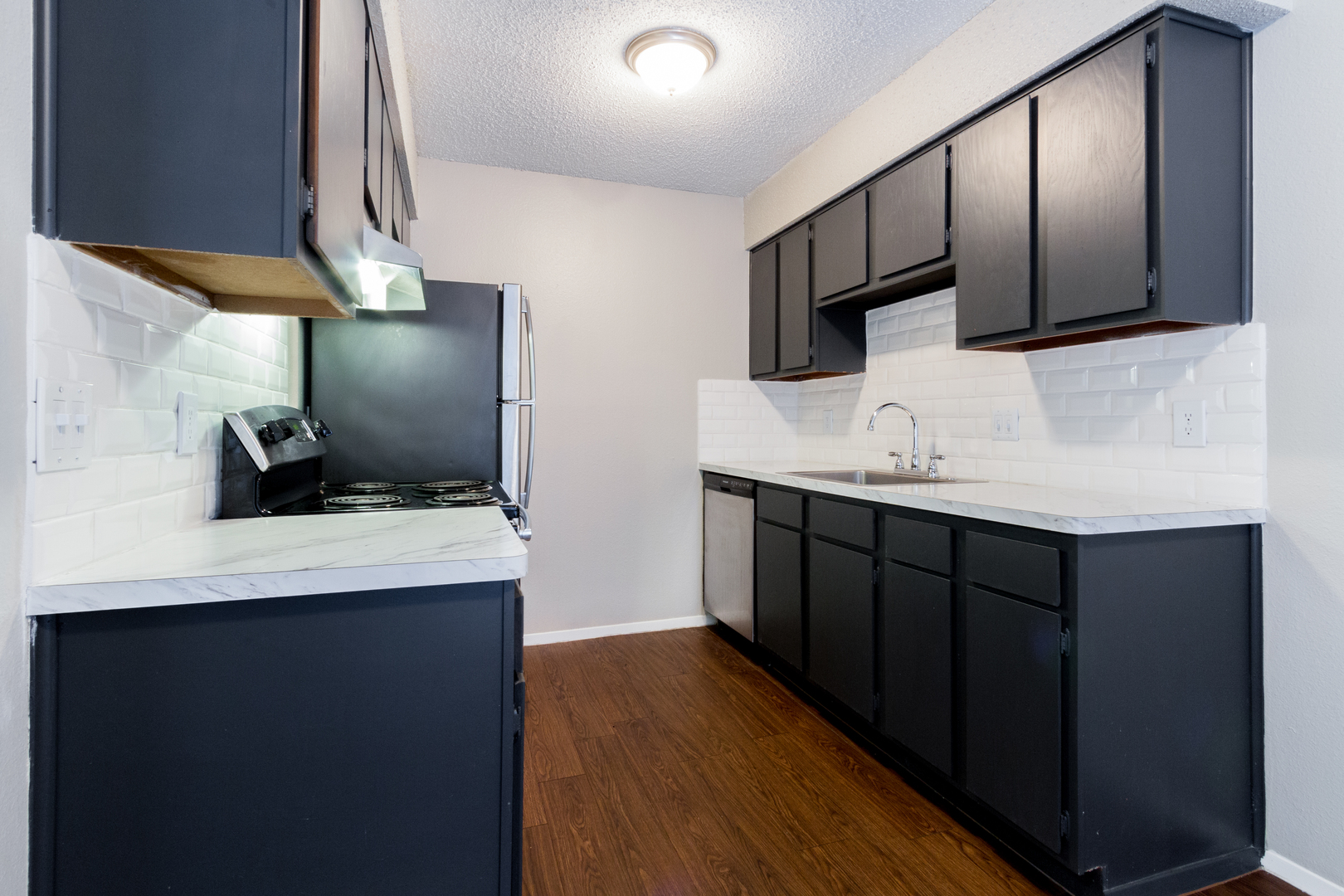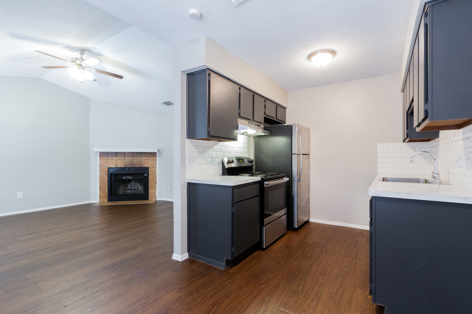 Designer Charcoal Cabinets, Modern Countertop, Large Sink, Stainless Steal Appliances, Bright Modern Paint! Great Oak Hill Location!