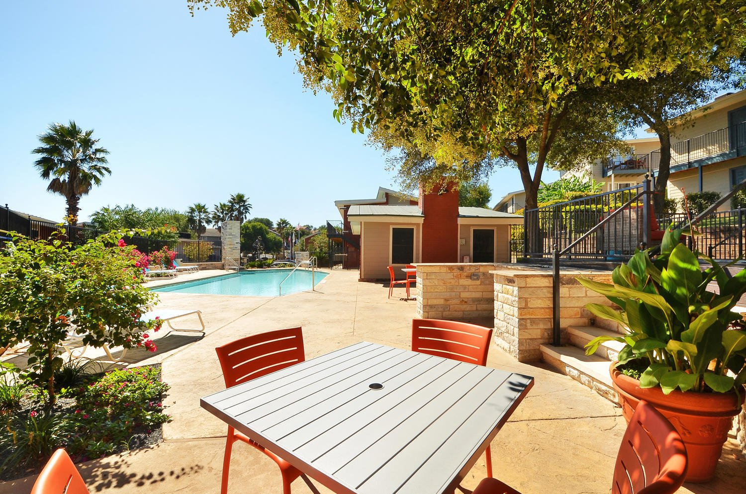 Amenities include sparkling pool, large sun deck, Google Fiber, business center and onsite laundry.