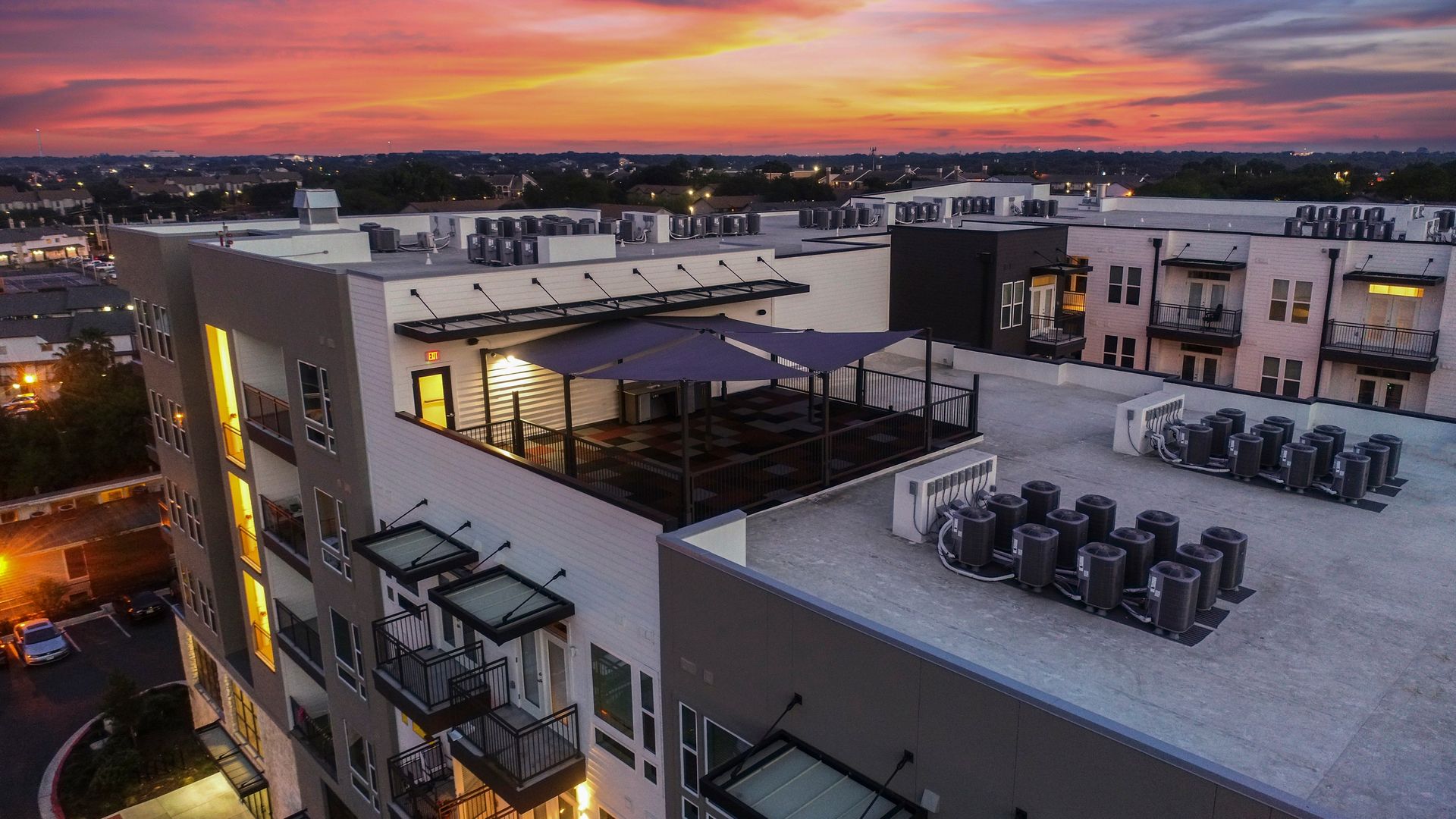 Amenities include Sparkling Pool, Large sun deck, Google Fiber, Business Center, Clubhouse, Fitness Center, Dog Walk, Dog Wash station, and Downtown Views!