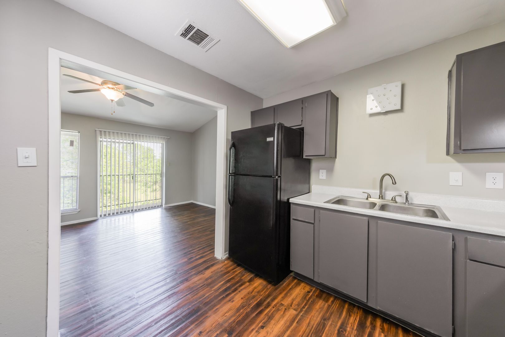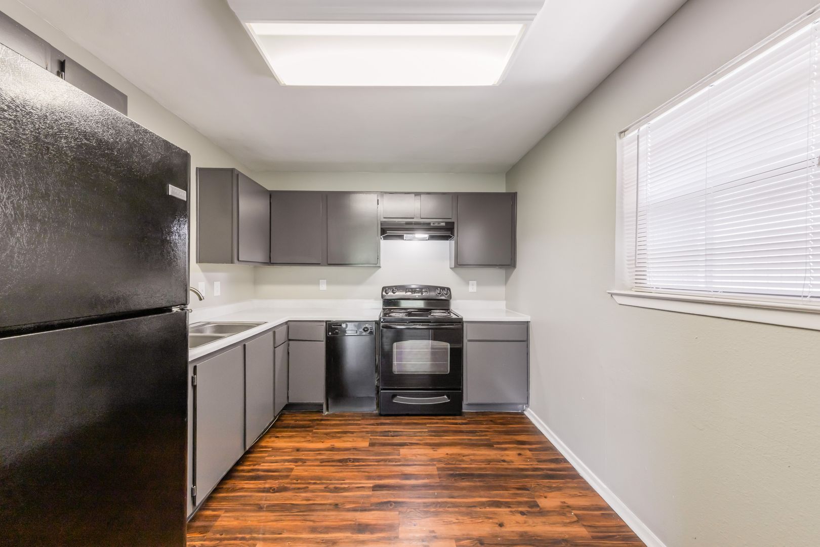 Designer Charcoal Cabinets, Modern Countertop, Large Sink, Black Appliances, Bright Modern Paint! Great location - steps from great shopping and entertainment.